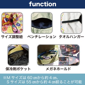 ●保冷剤入れ、タオルハンガー、着脱式アゴ紐付き